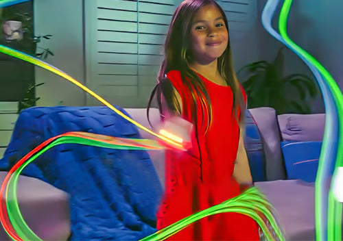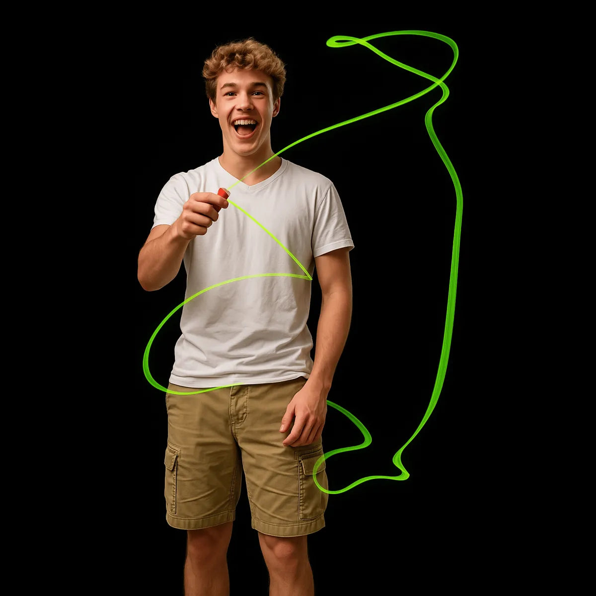 Ku-String™ trae magia real a tus manos! Lanza cuerdas luminosas que desafían la gravedad y crean formas en el aire.