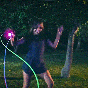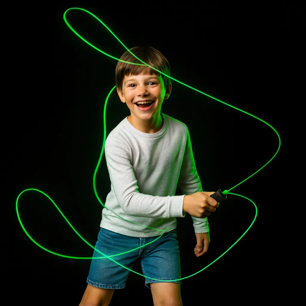 Utiliza una cuerda ligera y de movimiento rápido que se acciona mediante un pequeño dispositivo portátil. Al activarla, la cuerda flota y da vueltas en el aire, permitiendo a los niños guiarla y realizar divertidos trucos.