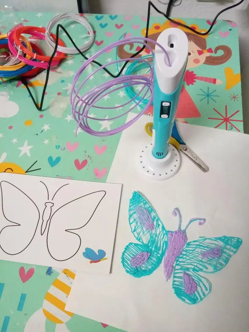 - 🔥 Dibuja Presiona el botón. El lápiz calienta y derrite el plástico de forma segura, listo para que fluya.